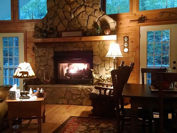 INCREDIBLY PRIVATE CHALET ON A BEAUTIFUL SMALL CREEK. 5 LOTS PLATTED INTO ONE TOTALLING 2.75 ACRES WITH ONLY 2 POA DUES. WRAP AROUND COVERED PORCH ON ALL SIDES. THE INTERIOR IS CABINY WITH HARDWOOD FLOORS AND TONGUE 'N GROOVE PINE. ROCKED WOODBURNING FP IN GREATROOM. MASTER ON THE MAIN. WITH AN END OF THE CUL-DE-SAC LOCATION AND MULTIPLE LOTS IT FEELS TOTALLY PRIVATE AND YET ONLY MINUTES TO THE PAVED ROAD AND MAIN GATE FOR EASY ACCESS TO TOWN. ALL RESORT AMENITIES AVAILABLE WITH POOLS, 5 RIVER PARKS, FISHING LAKE, REC CENTER AND MUCH MORE. A DELIGHTFUL GETAWAY IN A LOVELY SETTING.