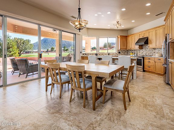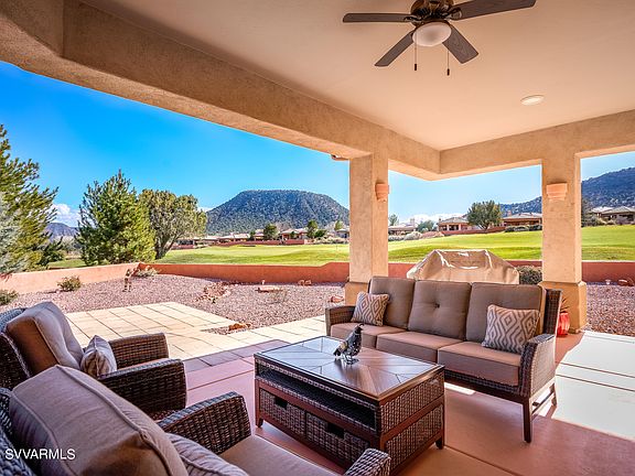 Single Level showcase home in Sedona Golf Resort with end of the road privacy and direct red rock views. Ideal for entertaining, this top of the line home features an oversized well manicured backyard with covered patio to take in morning coffee or evening drinks outdoors in our four mild seasons. Recent designer remodel includes new pecan cabinetry, granite countertops, new appliances and custom backsplash. Massive primary bedroom includes a large bathroom with walk in closet for plenty of storage. Two additional bedrooms on the main level are separated for privacy. Designer touches and high end level of finish ensure this house is in move-in condition without need for any repairs or upgrades. Full three car garage is ideal for extra cars, storage or workshop.