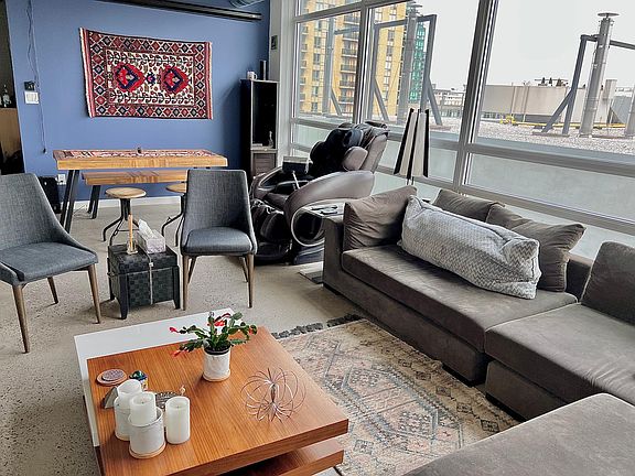Sun-drenched, fully-furnished corner unit in the heart of Queen West's Art and Design District. This two-bed, two-bath spanning just under 1,000 square feet on the 10th floor with unobstructed views of the city and Lisgar park. Steps from some of the city's most charming restaurants, bakeries and bistros and a short walk to entertainment venues, Ossington strip and Queens park. Dog-friendly and community-driven, this place has a real neighborhood feel and has been my home for half a decade. Entrance: You enter into a large foyer which some people consider a den. You've got a coat hanger to the right and the entrance to the washroom. It's a full washroom with a bathtub as you can see in the picture. I've decorated the place with art taken from different parts of the world. Rooms: The main bedroom which contains a large king size bed. You'll sleep on an expensive tempur pedic (firm) mattress and get the best sleep of your life. This room also contains a side table, chair and a chest of drawer. From here you can enter the attached bathroom by passing through the walk in closet. In this compact washroom you'll see two vanities, a shower (filtered shower head to protect your hair) and a smart toilet seat. Yes, you control the temperature of the seat and water. As you walk towards the living area you'll see the second bedroom to your left that I have setup as an office space and workout area. The adjustable standing desk has two large monitors and an extremely comfortable ergonomic chair. This room also contains a spacious closet for extra storage. Living room: As you walk towards the living area you'll notice a laundry closet to your right just before the kitchen. Then you'll see a beautiful wooden dining table on your left across the kitchen area and a floor to ceiling wrap around glass window that gives an incredibly open feeling to this space. A large massage chair ( $4K) awaits you right after the dining area that'll offer extreme relaxation from head to toe. Kitchen: The kitchen is fully equipped with everything you'll need from a dishwasher, oven, fridge, toaster, air fryer, hot pot, electric grill, kettle, water dispenser and even a soda stream. You'll find everything you need in the drawers/closets that you require. Living room: The living area is equipped with a large L shaped sofa and two chairs. There is a large smart 3d tv with a surround sound Bose system (500 series) with woofer and back speakers. You'll enjoy watching tv or listening to music like you haven't before. And due to our cement walls construction, never get a noise complaint. Alexa is built in the bose system and you can control lights in the home by just asking Alexa. Professional cleaning service every alternate month by a highly reliable staff member. Parking fee is included in the rent. Owner pays for water. Tenant pays for hydroelectricity, and will set up and pay for their own internet. First and last month's rent is to be paid at the time of signing the lease. Incase of any damage or loss to existing furniture or property, the renter will have to pay at the end of the lease. Lease will have to broken in the case of renovations required to the unit and/or property owner's family needing to live in the unit. 30 days notice required for breaking the lease by both parties. Strictly no smoking. Small pet less than 20 pounds in weight is allowed.