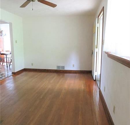 Meticulously maintained one owner ranch on a huge lot! All of the rooms are generous in size, bright and warm. You are welcomed into the home via a large, covered front porch with stainless steel awning and railings. You are greeted in the home by a large living room with warm, hardwood floors. The dining room is convenient to both the living room and kitchen. The kitchen has plenty of cabinet space and a separate side entry with a stainless steel awning and railings too. The bedrooms are ample in size and light. The entire interior has been freshly painted. It has 200 amp electric service. The basement is a blank canvas ready for your ideas. The outdoor space includes a 12 x 12 storage barn and fruit bearing apple trees.