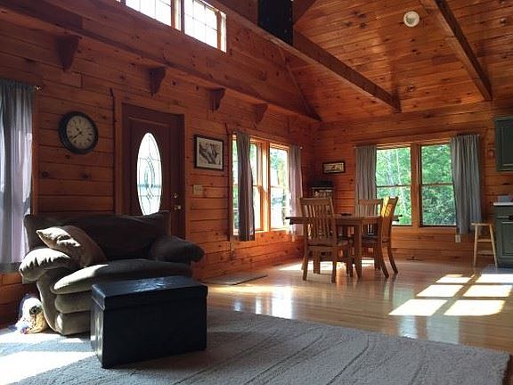"The natural light abounds." Beautiful log home w/ a great view of Cayuga Lake w/ acreage & privacy. What more could you want? This well-kept 3 bdrm home sits on 9.93 acres w/ a pond & an oversized 4 bay garage w/ enough room above to do whatever suits you. An open floor plan, vaulted ceilings & a loft give this home a uniquely comfortable feeling. W/ a finished basement, 2 porches, Trails for dogs or walking, 2 raised garden beds - this property has a little something for everyone. Don't miss out on this opportunity!