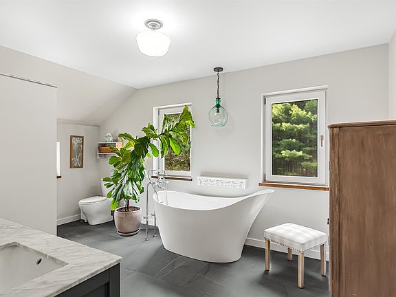 Nestled in Richmond's heart, this custom modern farmhouse exudes elegance & innovative design. With 3 beds & 2 baths, the main house boasts a bright & open concept floor plan & construction detail sourced from the property. An accessory dwelling above the 2 car garage adds a bed & full bath for guests or rental income. It includes a fully operational kitchen, W/D & raised deck. Located in a quiet, wooded neighborhood, it is conveniently located near the interstate for commuting but with all the pleasures of a more rural setting. This sustainable home boasts high-efficiency modern design. Schuco tilt/turn windows, wet-blown cellulose insulation & R-80 ceilings. Multi-zone heat pumps ensure year-round comfort, while a Harmon Pellet stove provides cozy warmth in winter. Extra features include whole house water softener & a 14.5 kWh net metering solar install. Locally sourced ash hardwood floors grace the main house. A stunning butcher block stairwell follows a 14-foot triple-glazed window, creating a central focal point. The garage showcases cedar siding treated with the Shou Sugi Ban process for durability & unique finish. Cedar raised boxes, fruit trees, & perennial garden beds around the property offer gorgeous year round beauty & interest. In this thoughtfully designed home, modern comfort, sustainability & luxurious living converge in Richmond's quintessential location. A harmonious blend of beauty & efficiency! Showings start 9/15. Open house 9/17 1-3pm.