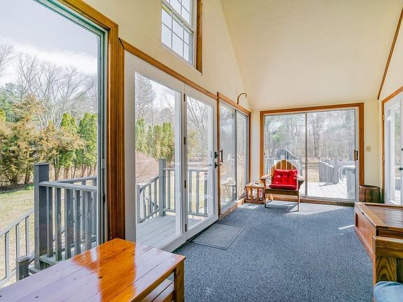 Don't be fooled by the exterior. This house is bigger than it seems. Beautiful 4 bedrooms cape with 2 bathrooms, sunroom/mudroom, and a partially finished basement. The kitchen opens up to the dining room and has granite countertops. Central air and heat. There are currently a total of 2,326 sq. ft. of living space with the partially finished basement. There's room to finish more of the basement for additional living space. Mainly hardwood throughout the house. Come out to the welcoming back deck to be greeted by an above ground pool and gorgeous tree-lined private yard for entertaining. Pride of ownership shows throughout. Plenty of storage space inside and outside. Attic space with full sized window. There are two sheds on the property. The paved driveway can park up to 6 cars. Commuter's dream! Easy access to Route 3 and a short ride to the Commuter Rail. WELCOME HOME!