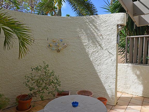 BEST Location at the Reef - First tier, first unit. Great Buck Island views. Well maintained & newly painted. Newer appliances, full sized W&D, AC, Storm shutters & full sized awning. Tiled patio and atrium. Expanded kitchen. Great storage. This is a wonderful one bedroom unit! Sold fully furnished!