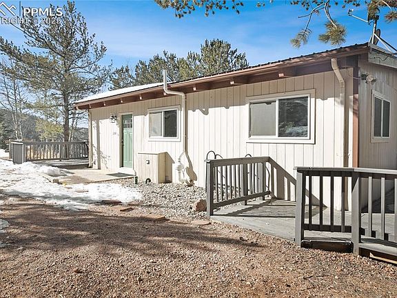Find peace in this charming mountain retreat. -Enjoy breathtaking views of tranquil ponds and the surrounding valley from the home's expansive decks. Inside, you'll find: -Cozy living spaces: Open floor plan with a wood-burning fireplace, hardwood floors, and an updated kitchen. -Two bedrooms and two bathrooms: Comfortable and convenient for guests or family. -Fully finished basement: Features another fireplace, built-in bookshelves, and a second living area. Outdoor living at its finest: -Large decks perfect for entertaining or simply relaxing. -Storage shed and 240V electrical for a hot tub. Ideal location: - Close to Cripple Creek, Woodland Park, and Mueller State Park for year-round outdoor adventures. This home offers a perfect blend of comfort, charm, and stunning mountain views. Whether you're seeking a peaceful weekend getaway or a full-time mountain residence, this is the perfect place to call home.
