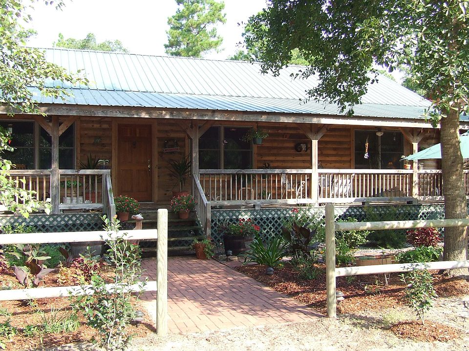 Looking for peace, serenity and privacy, with lots of space around you? This has it all. Home was built in 2002 on 3.65 acres of land as a custom, ranch style Log Cabin. Home has a dedicated, gated entrance and is nestled on a cul-de-sac with three sides of the property fronted by the Francis Marion National Forest. The only sounds heard are the local wildlife. Enjoy the lily pond (with power access), lighted field, and trail to neighboring pond all from your fenced in yard. Stargaze or bird watch from your backyard fire pit or screened in back porch. A concrete pad off the garage has previously hosted a basketball goal and can be used for a raised garden, oyster roasts, parking pad or gazebo.Back of lot has a recently installed above ground pool with power access.