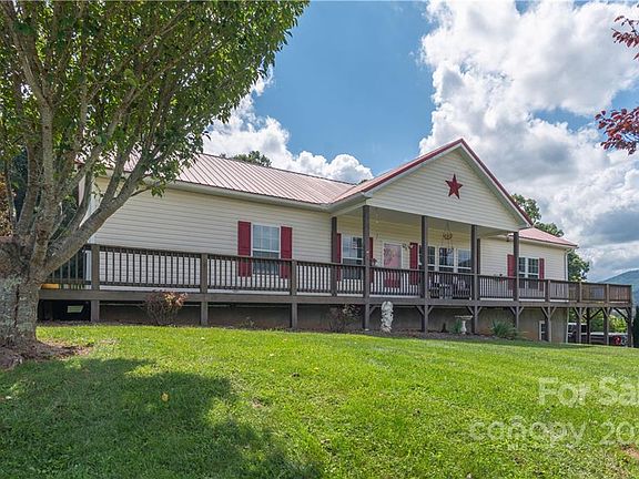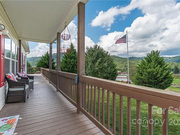 Beautiful 3 bdrm/3 bath home, situated on 1.09 acres, w/mountain & pastoral VIEWS! Open floor plan, crown molding, spacious great room with stone gas fireplace & dining area with built-in china cabinet. Kitchen with ample cabinetry for storage. Main living area, bedrooms & laundry are all on one level & finished lower level has full bath, additional bonus rms, office, family rm/exercise rm or a workshop & separate entrance...so many possibilities. Detached 2 car garage, storage shed, plus unrestricted land with easy access & large parking area. Savor the gorgeous VIEWS, from the wrap around porch. Cozy up to the firepit on cool evenings, as you sit under the stars. Only minutes to downtown Waynesville or 30 min to Asheville.