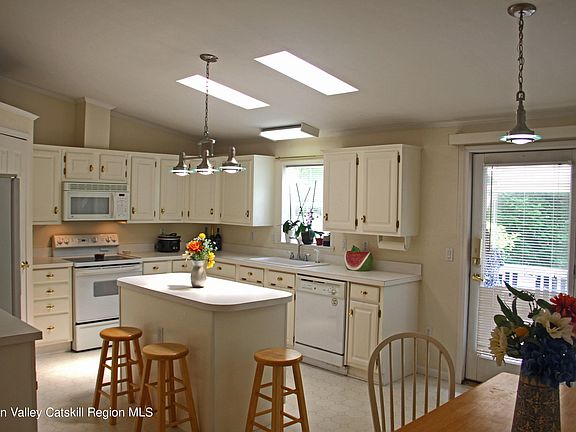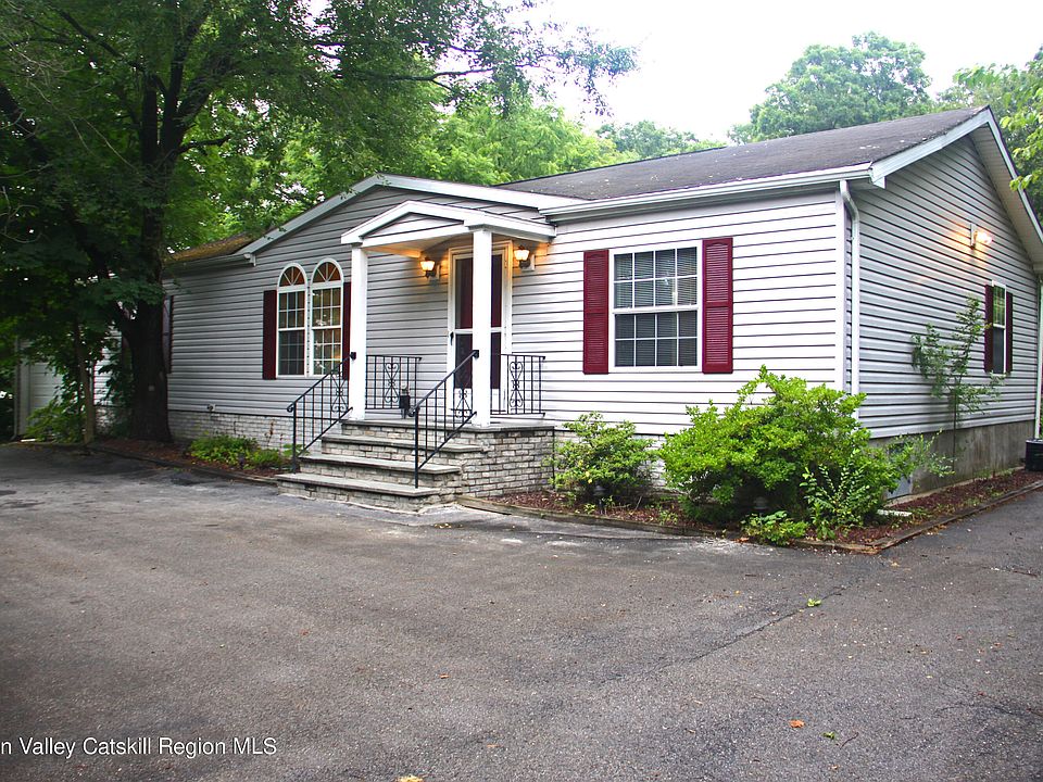 Built in 1998 and owned by the same owner for the last 20 years, this well-kept, clean and easy to maintain ranch in Highland School District with 3 bedrooms and 2 full baths is move-in ready! The property is in the Highland School District but in the town of Plattekill means low property taxes! Enjoy Catskill Mountain views from the front covered porch. The home sits on over a half acre of property lined by Catalpa trees, Black Walnut Trees, and Black Raspberry Bushes offering serene privacy. Inside you'll enjoy 10' vaulted ceilings and a well-thought layout that separates the primary bedroom from the other bedrooms and bath. The primary bedroom features both a garden tub and a separate shower. There is another private area before the bathroom door that is equipped with a double sink and a makeup vanity and walk-in closet. The bright and airy 'great white' kitchen features over 30 cabinets/drawers and a walk in pantry for ample storage. The kitchen island is lit by tasteful lighting fixtures and a double skylight. The entire home is cooled with central A/C and each room also has a ceiling fan. Through the rear atrium door you'll step out onto the 14' x 26' deck that overlooks the gently sloping backyard, perfect for grilling and summertime fun or wintertime sledding. The property backs up to the Rocking Horse Ranch Resort. The 10'x15' Sunsetter awning will keep you shaded on the days that the sun pours in. There is a mudroom entrance into the laundry area (Whirlpool washer and Dryer) to kick off the boots and coats. The home is set back from the road with plenty of foliage and an illuminated circular drive. Attached to the home is a carport with insulated garage doors at the front and the back. Inside the carport is a generator hookup/interlock with a disconnect switch. Conveniently located 5 minutes from MHB/Metro/POK, 10 minutes to SUNY New Paltz/I-87, just a short drive from Marist, CIA, Walkway over the Hudson, Rail Trail, Mohonk, et.