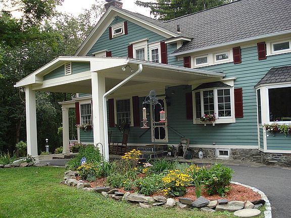 OLD OTTERKILLFARM - Beautiful historic colonial and potential horse property. Home features 6 bedrooms, 4 ½ bath, 5 fireplaces, original heart pine wood floors, dual staircase and updated gourmet kitchen with a walk-in pantry, granite countertops, commercial Wolf range and large island . Master suite has a California closet, large master bath with claw foot tub/shower and balcony sitting area overlooking the family room/sun room, currently used as a small gym. Whole home has been updated while keeping the look of the period yet mindful of modern needs. Main living area is 3,860 sq. feet plus 1220 sq. feet of finished basement space that includes a family room, bedroom, bath with new walk-in shower and kitchenette. Has private entrance. Outbuildings include a charming guest cottage with kitchenette, full bath and small loft; detached 3 car garage with workshop and chicken coop; and a 1895 2 level bank barn with the original stone silo. Waterfront property on the Otterkill River. Beautiful grounds with lovely gardens and a newly installed waterfall feature. Potential horse property. MODERN FEATURES: - Eat in kitchen includes 48" professional Wolf range, stainless steel appliances, new granite countertops, and walk in pantry. - New double hung windows throughout most of the house. - New garage roof - Alarm system - 3 zone heating and 2 zone central air conditioning. -New large Treks 2 level deck with a screened-in gazebo. - Lawn sprinkler system - Upstairs laundry - Generator hook up and transfer panel. CLASSIC FEATURES: - Front of the house has original double hung windows with "wavy glass" and storm windows. - 5 fireplaces (4 working). - Original heart pine floors. - Rocking Chair front porch. Showings by appointment please.