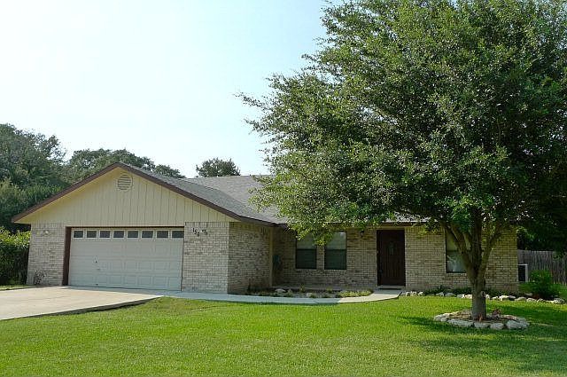 Wonderful 3 bedroom, 2-1/2 bath home in beautiful Oak Village North. Recently updated home has large family room with vaulted ceiling & wood burning fireplace. Kitchen has granite countertops, stainless sink & breakfast area overlooking backyard. Spacious dining room. Split bedroom design. Large master bedroom has vaulted ceiling & fantastic master bathroom with two separate vanity areas (each with walk-in closet), whirlpool tub and separate shower. Inside utility room has half bath & lots of storage. Oversized garage with shelving and built-in cabinets. Large covered outside patio.