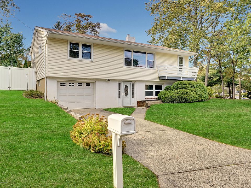 Your WAIT is OVER!*Perfect Opportunity in SHARK RIVER HILLS*This Spacious RAISED RANCH on a Beautiful CORNER LOT offers 3 Bedrooms*2 Full Baths*1 Car Garage*Lower Level Entry Foyer is Tiled leading to Family Room w/ Woodburning Fireplace and FULL BATH w/ Additional Unfinished Basement Storage Area*Upper Level Features OPEN Concept Formal LR & DR w/ Laminate Flooring*Access Door to Balcony in FRONT and Sliders to Wrap Around DECK in Rear*Galley Style Kitchen w/ Granite Counters & Access to DECK*Custom Mosaic Backsplash*Full Appliance Package*3 Spacious Bedrooms w/ Newer Laminate Wood Flrs*FULL Updated BATH*Great YARD for SUMMER FUN*Inground Pool*ONE BLOCK TO THE RIVER*Minutes to the Private AMAZING Shark River Beach & Yacht Club as well as the NEPTUNE Twp Municipal Marina*
