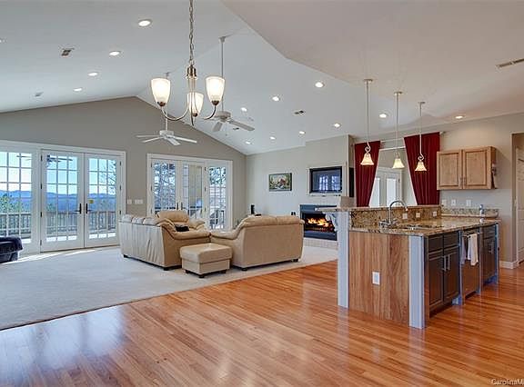 PRICED BELOW APPRAISAL! Spectacular long-range mountain views year-round from this luxury home! Quiet, private location. Great room opens to expansive patio and deck with built-in JennAir grill, patio speaker system, outdoor refrigerator and cozy fireplace perfect for entertaining. Master bedroom boasts attached office with built-ins, fireplace, private deck, and luxurious master bath. Two guest rooms on lower level each with private baths. Extra-large bonus room (25' x 21.5') is perfect for artist studio, yoga studio, workshop, home office or hobbies/business. Professional landscaping, yard irrigation system, and high voltage outlets in garage ready for electric cars. Home security system. Separate heat pump for bonus room. Kitchen features extra-large commercial refrigerator, gorgeous granite counters, loads of cabinet and pantry storage, and is plumbed and ready for gas (existing range is electric but gas is ready to go). $3000 carpet allowance. Only minutes to downtown Brevard.