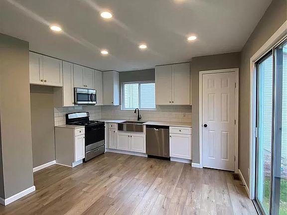 Renovated 3 bed 2.5 bath home in Lake St. Louis, close to I-64 and I-70. New roof installed in 2023. Completely renovated inside with new hardwood laminate flooring throughout, new six panel doors, brand new kitchen with quartz countertops and stainless steel appliances. Powder room on main floor. Master suite features two closets (one in master bath), a vaulted ceiling, and the master bathroom features new shower, and quartz vanity with makeup counter. The lower level has over 300 sf of finished living space. Broker-owned.