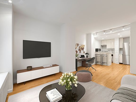 Discover the elegance of The Van Dorn, a beautifully renovated one-bedroom with classic pre-war charm. Sunlight floods the space through large double paned windows , highlighting gleaming hardwood floors and custom recessed lighting throughout. The open, sleek white marble kitchen is modern and fully equipped, including a dishwasher, while the stylish marble bathroom combines sophistication with functionality. Every detail, from the refined woodwork to the carefully curated finishes, reflects thoughtful design and timeless appeal, creating a bright, welcoming, and polished Manhattan home.