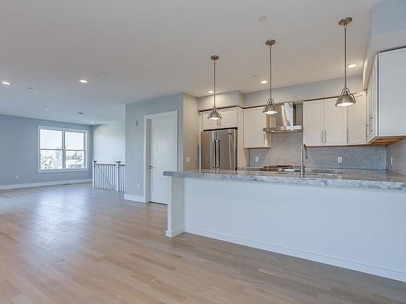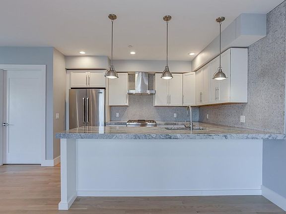 Spectacular penthouse with city View. Breathtaking penthouse with open Kitchen/living/dining area. Kitchen features high end stainless steel appliances, 2.5 inch thick Quartzite counters with a large overhang for stools. The L shaped Living area offers separate dining and living room spaces along with 2 separate private walkout decks. The larger of the 2 decks is your perfect opportunity to create your very own rooftop oasis with a soaring view of the Boston skyline as your backdrop. Master bedroom includes enormous walk-in closet, Priavte balcony & En suite bath. En-suite bath features marble tile, rainfall shower head and double sinks. Laundry in unit, 2 deeded parking spaces, extra storage closet in garage and access to the common roof deck. All of this only 2 blocks to Broadway T station and a half mile to the Seaport.