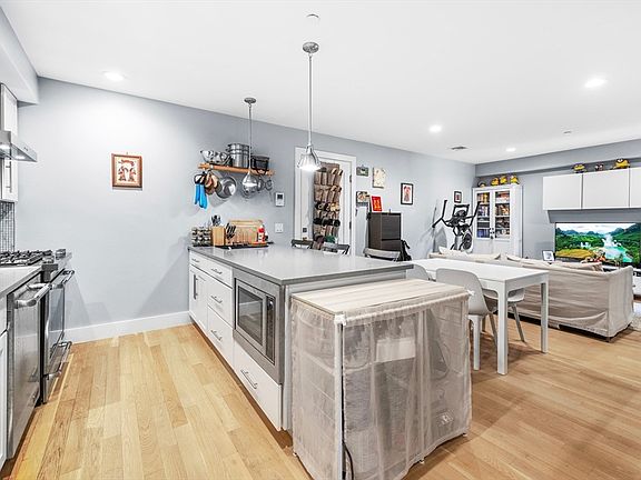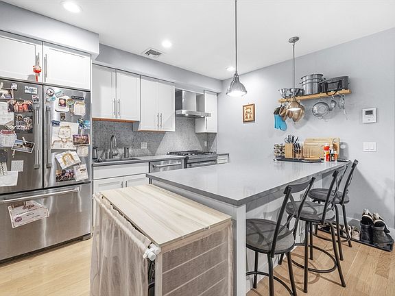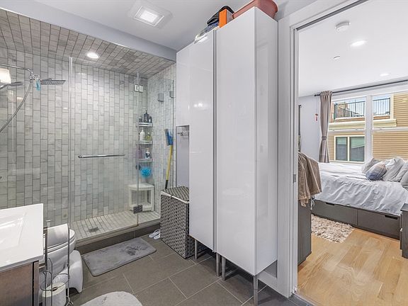 Welcome to 150 W Broadway—a modern 2 bed, 1.5 bath unit offering 1000 square feet of stylish living in the heart of South Boston. Built in 2018, this home features wide-plank hardwood floors, a chef’s kitchen with quartz waterfall island, custom blinds, and oversized windows flooding the space with natural light. The spacious primary suite includes a walk-in closet and spa-like bath, while the second bedroom offers flexibility for guests or a home office. Enjoy a private balcony, heated bathroom floors, in-unit laundry, and a deeded garage parking spot. Building amenities include a shared roof deck with gas grill, elevator, and professional management—all just steps from the Broadway T, Seaport, South End, and top local dining & shopping.