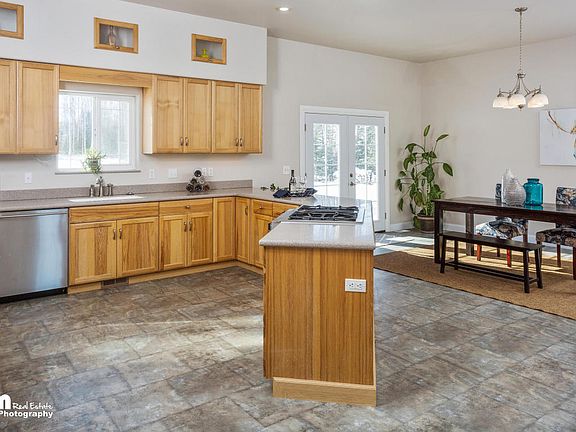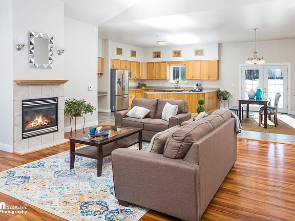 Pilot's Oasis in easy commute location! 1915' x 120' private airstrip (7AK4), and beautiful, sunny ranch home with tons of natural light ready to move in and call your own. Build a hangar, or tie down in the gravel pad on your lot. Taxi from your property straight onto the strip! Large, open concept kitchen, dining, and living spaces, beautiful wood laminate floors, tile, and new carpet throughout Spacious mudroom includes a walk-in pantry, half bath, large coat closet, and stackable HE washer and dryer with built in folding area. Soaring ceilings help this space feel even larger than it really is. Master bedroom boasts a large walk-in closet with built-ins, oversized tub, separate shower, and dual vanities. Located on Jack Fish Landing Airstrip. Field is lighted, and only 3NM to PAWS, and 20NM SW of PAED. The nearly 5 acre parcel is flat, well maintained, and ready for your hangar, your horse barn, or both! Oversized garage provides plenty of room for toy storage. This is truly a must-see to believe property!