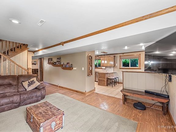 Searching for your own slice of lakeside paradise in a fantastic Hinckley location? Get a glimpse of this incredible 3-bedroom, 2-bath residence on just under an acre lot surrounded by mature trees! Set well back from the street, this remarkable abode welcomes you with lush landscaping bordering the covered front porch. Through the artisan entry, discover a 2,100-sq ft interior displaying neutral tones, exquisite crown molding, and shining wood-style flooring bathed in brilliant natural light. With generously sized gathering areas, you'll have plenty of space to entertain. Recessed lighting and rich wood accents continue across the living and family rooms, where an inviting gas fireplace keeps you warm on chilly evenings. Favorite meals are best enjoyed over good wine and great conversation in the sunlit dining area featuring built-in banquette seating. Show off your culinary skills equipped with the kitchen's top-notch stainless steel appliances, abundant cabinetry for your pots and pans, a pantry, and garbage disposal. Gleaming granite countertops extend to the pendant-lit breakfast bar. Ceiling fans and plush carpeting create a restful atmosphere in your upper-level bedrooms, two of which are graced with balconies. The luxurious proportions of the primary suite highlight a walk-in closet and direct access to the shared spa-like 5-piece bath with a double vanity, a separate shower, and a freestanding soaking tub. Another tastefully tiled full bath can be found on the main floor. Imagine coming home after a long day to relax in your idyllic outdoor oasis, where a multi-level deck inspires weekend BBQs, al fresco celebrations, or cool nightcaps. A pergola-covered area provides the perfect spot for unwinding, while a picturesque screened-in gazebo with a TV overlooks the serene water. Endless fun awaits the young and young-at-heart in the large, shaded backyard. As perks, you have water rights and a personal dock, so you can keep up your active lifestyle by swimming, kayaking, paddle boarding, and boating. You can even try your luck at fishing.    Other notable items are electrostatic furnace filters, a reverse osmosis system, a heated attached 2-car garage with 60-amp RV hookups, a detached shed with 200-amp service, and a 4-year-old roof with 50-year shingles. As a bonus, a convenient laundry closet with a sink is neatly concealed for easy accessibility. An ideal location means close proximity to shopping, dining, Garfield Park, and Hwy 30 for you to connect to the neighboring cities. With all this stunning haven has to offer, what are you waiting for? Come for a tour before it's gone for good!