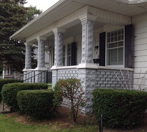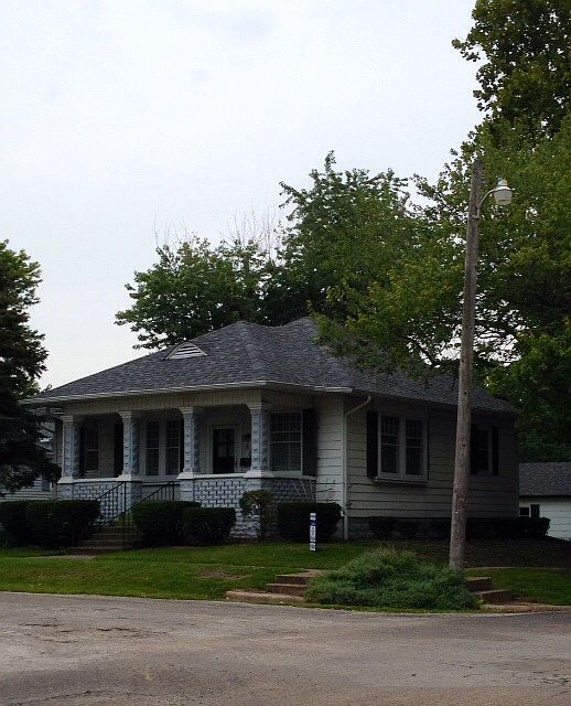 This 2 bedroom one bath bungalow has a large living room, eat in kitchen with knotty pine cabinetry and a nook for your table and chairs and 2 bedrooms. It has been improved with laminate flooring throughout the living room and has a very nice covered front porch area to sit and relax. All appliances stay in this move in ready home. It also has a 2 car detached garage in the rear and is located on a corner lot.