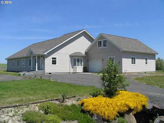 Oasis in Adams! Come see this Newer Custom Built Executive Home nestled in the quiet community of Adams, Oregon. Featuring high ceilings, unique and open floor plan, spacious walk in pantry, bonus rooms, and complete with architectural interest and attention to detail. Plenty of windows bring in natural light. Pellet Stove, Ample RV Parking and a large shop. Combine the benefits of contemporary construction and country living.