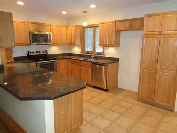 Private country setting! Flexible floor plan. Expanded Cape with 8 Rooms, 4 Bedrooms, 3 1/2 Bathrooms, 2 car attached garage, located on a 2+ acre wooded lot. Breezeway with skylight. Living room with wood burning stove. Large Master Bedroom with walk-in closet. Master bathroom, has a glass enclosed shower, jet tub and double sink vanity. First floor bedroom/office with a half bathroom. Granite kitchen with new stainless steel appliances, opens to large Dining Room. Den with full bathroom and french doors that lead to the large deck, overlooking the backyard. Second floor laundry room. Hardwood floors. Updated electric; new oil tank; new furnace and new septic system. Storage shed. Convenient commuter location. This is a Fannie Mae HomePath Property!