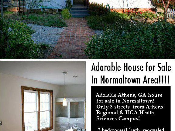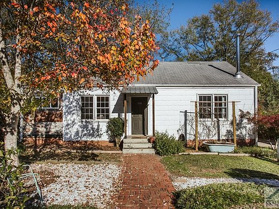 Charming 1950 cottage in the heart of Normaltown on a quiet street, with picket fence front yard, detached garage/studio/workshop, courtyard, on large lot with huge, fairly private backyard. Located in a wonderful walk/bike neighborhood, just blocks from Bishop Park, a neighborhood park, the 58 acre historic campus where UGA Health Science campus is located, local restaurants, coffee, juice, dessert, music venues, Piedmont hospital, and minutes from Downtown and UGA's main campus. Artful touches throughout house. Kitchen has stainless cabinetry, counters, and island (wrapped in heart pine), and appliances. Wood stove in living room. Double doors hung on metal brackets separate common area from either a secondary bedroom or office. Tile bathroom with IKEA sink/vanity. There's an office/pantry/studio and laundry area off kitchen. Back door opens to a private courtyard with fire pit. Front door opens to perfect cottage garden front yard, with maple tree, and jasmine vines tendril the picket fence, roses, a red leaf Japanese maple, lantana, and bulbs. The back yard has the feel of a park, expansive and lush, wonderful for recreation or gardening, and plenty of land to expand if desired. Convenient to all things Athens, this is a rare gem worth seeing.