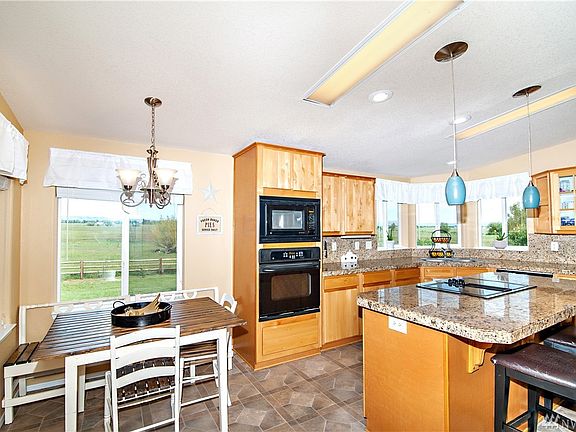 Turn-Key! Large kitchen w/huge island (granite counters) lge walk-in pantry opens to great rm w/gas fireplace w/rock surround! Dining rm has doors to covered porch & opens to addit. living space w/pellet stove. Master suite has 2 walk-in closets & bath w/soaking tub! Office could be converted to addit. bedrm. Detached 30X34 shop w/3 drs, 3/4 bth, pellet stove & loft area. Addit. bay off back of shop, separate utility building w/elec. & Chicken coop. Fenced Pasture, Pond, Irrig., Sprinkler system