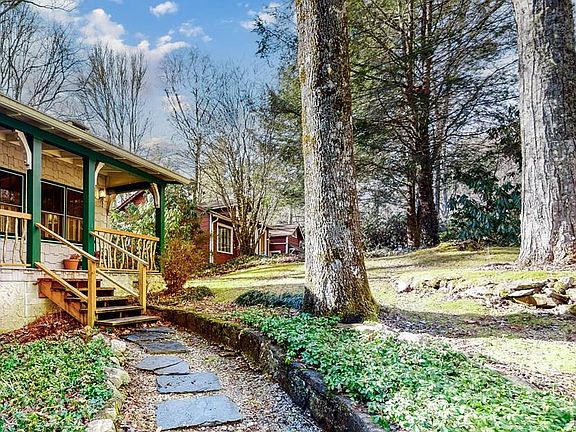 This charming two bedroom, two-and-a-half bath cottage is located in the picturesque Mirror Lake area of Highlands, North Carolina. The cottage features a cozy and inviting interior, with vaulted, beamed ceilings and a wood-burning fireplace, which is perfect for enjoying on those cool mountain evenings. The open floor plan allows for easy entertaining and the fully-equipped kitchen looks over the level back yard. The bedrooms are both spacious and comfortable, and each has its own en suite bathroom. On the lower level, a small office with a half bath could easily accommodate extra guests. Enjoy the outdoors on the large stone patio or take a short walk to Mirror Lake. The property is surrounded by beautiful natural foliage, providing privacy and a peaceful atmosphere. The perfect mountain getaway awaits you!