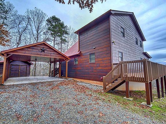 Stunning Custom Built cabin with Elegance Through-Out & VIEWS from EVERY ROOM! You will be AMAZED from the minute you walk into this Energy Efficient Home! True quality and style throughout the Custom designed & quality built 3br/3ba cabin with year round mtn. views, situated on a peaceful & private 6.82 acre lot, with wrap around porches/decks for outdoor entertaining, all wood interior, views from all 3 levels, cozy living room with corner gas-log fp, cathedral ceilings, hardwood floors throughout, two bedrooms & bathroom on main level, eat in kitchen, pantry, office nook, open loft overlooking living room, lots of windows for natural light, incredible master suite upstairs with awesome views, large walk in closet, make-up area, jetted tub/separate shower & his/her vanities, full bsmt, one side finished with den, bathroom, & wet bar & the other side is unfinished w/nice workshop, walk out bsmt patio, nicely landscaped w/large outbuilding and 2 car carport. This cabin is perfect for year-round living or as a vacation get-a-way! Would make a fantastic Air BNB.
