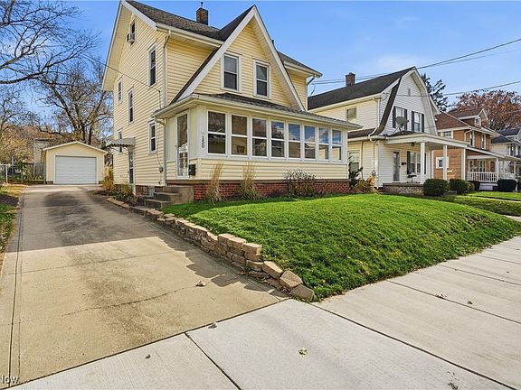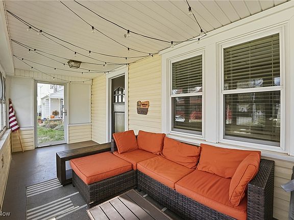 Welcome to this charming, character-filled home in the heart of North Canton—beautifully updated throughout and ready to welcome its next owner just in time for the holidays! Step inside the enclosed front porch, surrounded by windows, offering a cozy spot to enjoy morning coffee or evening relaxation all year long. The warm and inviting great room features a decorative fireplace (seller has never used), seamlessly flowing into the dining room—updated in 2020 with new drywall ceilings, crown molding, and a stylish modern light fixture. The kitchen was fully renovated in 2021, showcasing new drywall ceilings, granite countertops, stainless steel farm sink, new cabinetry, and stainless steel appliances—all less than four years old. The main level also includes a stunning, brand-new full bathroom (2024) with a walk-in tile-surround shower and glass door. Completing the first floor is a convenient mudroom with washer/dryer hookups and access to the 10x10 deck. Upstairs, you’ll find three charming bedrooms with beautiful hardwood floors and built-ins that add both style and efficiency. A full bathroom with a shower/tub combo and a large granite-top vanity completes the second level. The finished third floor offers additional living space and is currently used as a bedroom, complete with built-in drawers. The unfinished basement provides an impressive 25x30 area of storage space plus a dedicated laundry room (7x21) with a utility sink. In 2024, the seller invested in fully insulating the entire home for optimal comfort and efficiency. A 1-car detached garage adds even more convenience. Close to shopping, schools, and local dining, this home blends charm, updates, and location perfectly. Don’t miss your chance to call this gem your new home!