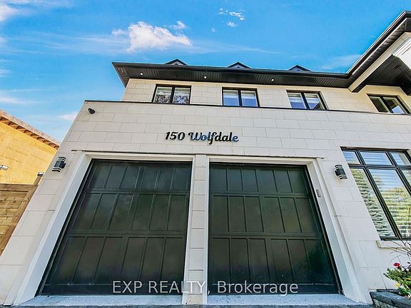 Welcome to 150 Wolfdale Avenue. Entertainers dream home, built by Ambassador Fine Custom Homes in 2023 fall, on a 0.36 acres in Southwest Oakville, south of Lakeshore Road. With 7276 square feet of living space on all three levels, this home perfectly combines sophisticated luxurious design with quality construction to create the ultimate package. The main floor is beautifully designed with exquisite detail radiant heated large porcelain tiles. The near 11-foot ceilings provide an open-airy feeling throughout. No estate home would be complete without a grand foyer and and this home has just that with 22 -foot ceilings, center of the house with 24-foot ceilings with large skylight allowing the entire house to be flooded with natural light while also highlighting the stunning hanging circular staircase beneath. Built-in wine cellar storage for over 180 bottles. The kitchen is a show piece with stunning 10-foot waterfall island, quartz slab backsplash and two-toned cabinetry and top-of-the-line Wolf ,Sub-Zero & Miele appliances. The kitchen/great room combination is designed for large scale entertaining with it being open concept to the dining room. A tucked away mud room, walk in closet with custom shelving & an elegant custom powder room are the perfect spaces to keep your family organized while providing inside access to both the garage and rear yard. Main floor you find your primary home office with front yard views. Elevator besides mud area travels all 3 floors for convenience of movement. The upper hallway stops you with a beautifully vaulted ceiling, skylights. Primary bedroom is located across the rear of the home taking in the best views of the backyard with ample natural light. The open concept walk-in closet with a skylight complements the primary ensuite, is a beautiful combination of rich tones to create the ultimate spa oasis. 3 additional bedrooms, Laundry & Library are found upstairs, each one uniquely decorated & appointed with closets and ensuites.