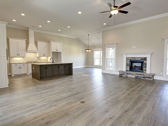 DescriptionAll brick High Point A is an open plan with 3 car side entry Garage and is backed by a 2-10 home warranty.. Home has 4 bedrooms, 3 baths and a sunroom. Home has wood plus flooring (Mohawk Revwood, Engineered Hardwood or similar product) in all living areas and bedrooms. Great Room features 12' ceiling, extensive trim, gas-log fireplace with upgraded fireplace treatment, floor outlet, recessed lights and ceiling fan. Dining room has 10' coffered ceiling and extensive trim including shadow box under chair rail. Open Kitchen includes 12' ceiling, soft close custom cabinetry with granite countertops, large island with extra storage and countertop seating, stainless appliances (Gas Cooktop, Cabinet Vent Hood, Wall Oven, Wall Microwave, Dishwasher), tile backsplash, recessed and under cabinet lighting, large walk-in pantry and drop zone bench.. Breakfast has 12' ceiling and extensive trim. Master bedroom has a 11' double tray ceiling, recessed lighting, extensive trim, ceiling fan and large walk-in closet. Master bath has 11' ceilings, free standing tub, large tile shower with two shower heads and rimless door, separate toilet area and double vanity with granite. Large sunroom has vaulted ceiling and ceiling fan. Additional bedrooms have 9' ceiling, crown molding and ceiling fans. The additional baths have 9' ceilings, tile flooring and granite countertops. Laundry has 9' ceiling, custom cabinets and tile flooring. Home has a tankless water heater. Home has a rear cover