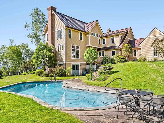 At the end of a lovely winding private drive you are welcomed to paradise with spectacular panoramic views of Mt. Mansfield and the Green Mountain Range. The 6.3± acres are beautifully landscaped with perennial and annual flower gardens and an in-ground pool with a charming gazebo. Upon entering this lovely home one is struck by an impressive great room with soaring 10 ft ceilings, a wood-burning fireplace, and cherry floors throughout the main level. The kitchen looks on to the dining area that enjoys beautiful mountain views. This spacious and immaculate home offers four bedrooms, three baths and a home office. The ensuite primary bedroom also shares the exceptional views of Mt. Mansfield. After all this...the lower level offers a home gym and easy access to the pool. This home is one that is meant to be enjoyed for generations and will not disappoint! Only 6 miles to Stowe Village.