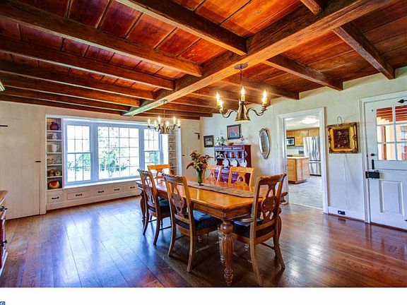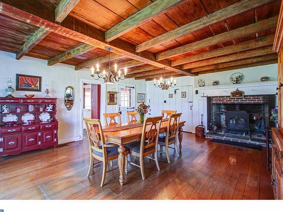 Scenic 14.9 acres in Lower Frederick Twp. This property is currently enrolled in Act 319, making the taxes very affordable. This home consists of four/five bedrooms and three and a half bathrooms with hardwood floors throughout the entire house. The spacious dining room has a large bay window surrounded by decorative shelving and storage under the window seat. There is also a large fireplace that has a wood/coal burning stove. The living room has wide plank wood floors, a large stone fireplace with a wood stove insert. There is a bedroom and full bathroom on the first floor off of the sunroom area. The large kitchen has plenty of cabinet space and stainless steel appliances. Upstairs the master suite has high ceilings, a full bathroom, walk in closet and a working fireplace. Additionally you will find a cedar closet in the hallway. Beyond that there is a full bathroom and 3 additional rooms. The spacious backyard has a pool with a wading area for smaller ones. A large flower bed with 2 blueberry bushes.Outside there is a 36x36 four stall barn with fenced pasture. Inside the barn you will find a heated tack room, wash stall with hot water, and an open center aisle with plenty of hay storage above the stalls. There is second barn with a finished room that could be used for an office and another area for a workshop. Below there are an additional 3 bays. Beyond the second barn there is a picturesque stream that runs through the property.Across the street there is Swamp Creek that is surrounded by County park land and is within walking distance to Historical Sunrise Mill. Close to Philadelphia Premium Outlets and has easy access to routes 422 and 100. Seller offering a 1 year HSA Home Warranty.Owner is a PA licensed Realtor.