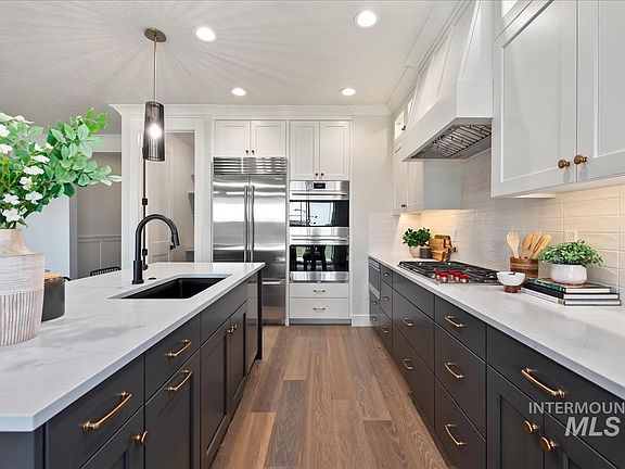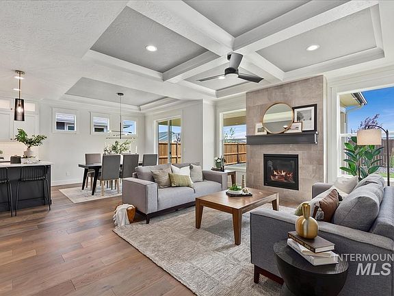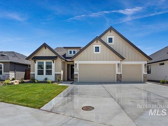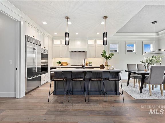 Move-In Ready with all of the custom luxuries you've been wanting! Venta Homes presents The Winstead located in Kuna's waterfront community of Indian Creek Ranch, a fully amenitized neighborhood with pool, sports courts, playground, beachfront park, and pathways along the beautiful natural surroundings of Indian Creek. Luxe amenities include full suite of Wolf® and SubZero® appliances including double ovens and 5 burner cooktop, custom ceiling height cabinetry with under mount lighting, quatrz surfaces throughout, designer lighting, and Venta Home's signature wood wrapped windows, moldings, and extensive trim work. The great room offers oversized windows, ceiling height fireplace with full tile surround, and elegant coffered ceilings. 4th Bedroom would make a great Bonus Room, Office, whatever you need a little extra space for in your new home! Primary suite is a dream with tile walk in shower, dual vanities, soaker tub and spacious walk in closet. Full fence and landscape, just move right in!