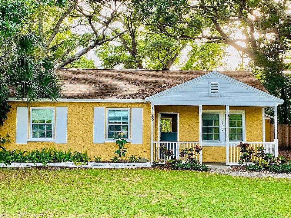 Wonderful Fully remodeled 2 bedroom home in Dunedin Fl. Moments from the beach and downtown Dunedin, This 2 bedroom, 1 bath home is a beautifully remodeled home, with Grey wash wood tone hardwood flooring throughout, complemented by beach grey stone walls and new trim combined with all new doors and windows. Generous sized open kitchen, stainless steel appliances and new wood cabinets. Washer and dryer off the kitchen area. Super clean, fenced back yard, pets welcome and a 1 car detached garage. The home is on a large tree covered lot sitting across a street separated lake