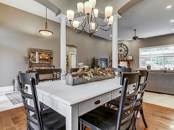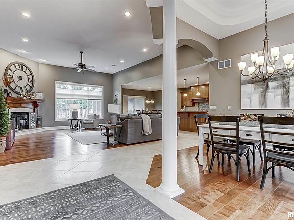 Park Forest Place in Rochester! It all starts with outstanding curb appeal with its all brick front and welcoming portico. Enter the home and you will be impressed with soaring ceilings, tall windows/transom glass, tile and hand-scraped HW floors (2018). The open floor plan allows for easy conversation when entertaining family and friends. This custom Moughan-built ranch features energy efficient geothermal, ALL LED lighting, arched doorways, gas log FP, and 2 x 6 constr. Beautiful kitchen w/large island and formal dining/flex space. To enhance your outdoor living, this exceptional home has a lovely screened-in porch, stone patio, and privacy fence. Heated 3 car garage, irrigation and security systems.