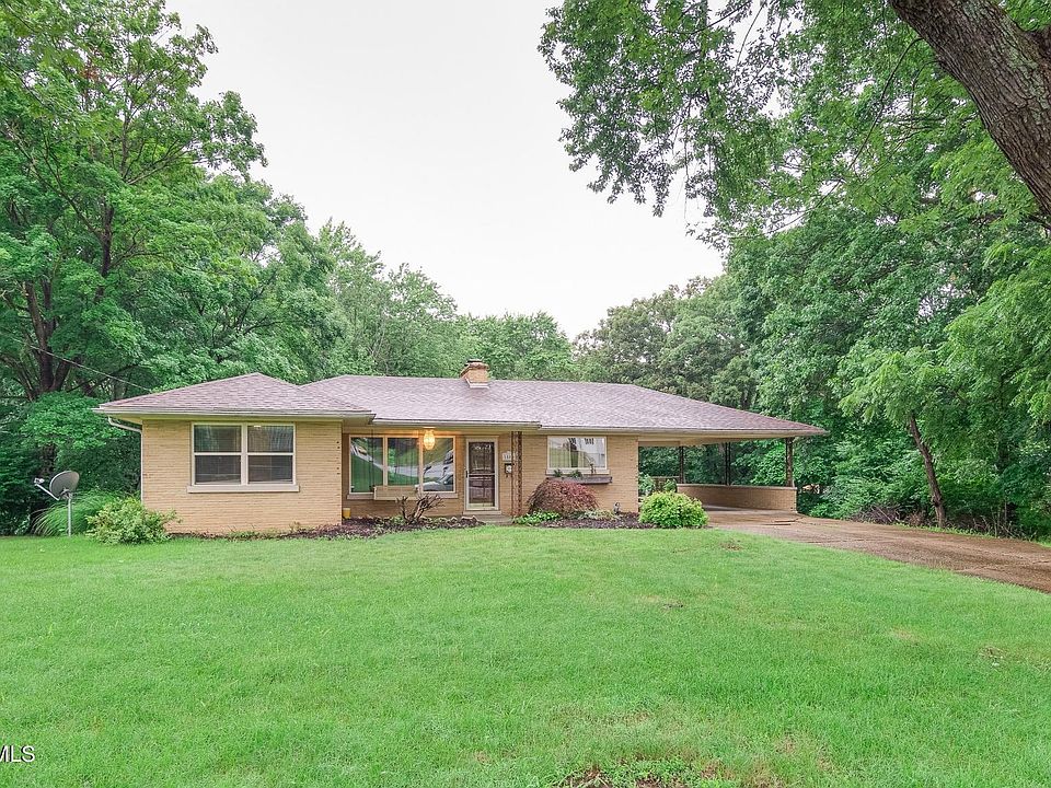 Great brick ranch home on almost a half acre lot! You'll enjoy the front porch swing! The lg. upper patio overlooks the huge back yard! Nice carport to carry in groceries! He added an extra drive beside the driveway for additional parking. Enter the stunning, spacious living room w/cove ceilings, gas (disconnected) fireplace, & gleaming wood floors! Large windows in the front & back give lots of natural light! Fabulous eat-in kitchen features granite counter tops, beautiful custom cabinets, & stainless appliances! Two bedrooms on the main flank a brand new hall bathroom. Lower level has family room & a master bedroom w/his & hers walk-in closets, door to patio, & master bath w/walk-in shower. Owner organized the garage/shop, added insulation & siding, disposer,& a shed. Washer/dryer stay!