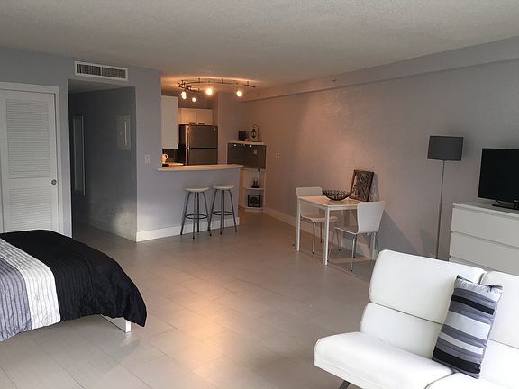 Waterfront condo on the bay Views of downtown Miami and pool Furnished; 3-12 months; rent shown is for 6 months Large modern gym; short walk to Lincoln Rd pedestrian mall Renter pays for electricity and internet. Parking included. Gym membership included for two in ultra modern gym overlooking bay.
