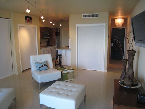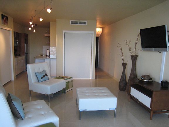 SHORT TERM RENTAL/30 day min. Direct Bay/Pool View Studio in the Flamingo S Tower. This apartment is fully furnished and stocked with all living essentials as a corporate rental. Professionally decorated and fully renovated including porcelinosa floors, granite counters, SS appliances with new kitchen cabinets, renovated bathroom, In-unit LG Washer/Dryer, 37 inch flat screen TV, custom murphy bed, new lighting.