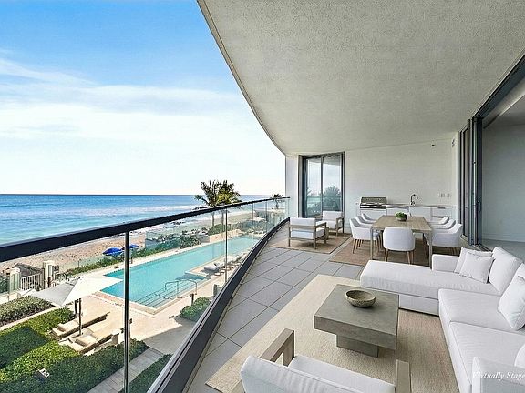 Welcome to SeaGlass on Jupiter Island, an ultra-luxury oceanfront residence offers sweeping Atlantic views and exceptional privacy. With only 21 exclusive residences, SeaGlass offers 24/7 security, resort-style living, and dedicated concierge services. This refined home features an open layout with floor-to-ceiling windows, marble flooring throughout, 3 ensuite bedrooms, club room, oversized terrace with summer kitchen, and a private 2 car garage. The gourmet kitchen is appointed with top-tier appliances, a Miele wine column, dual dishwashers, and custom Snaidero cabinetry. The primary suite offers terrace access, multiple closets, and his and her baths. Amenities include a 24-hour staffed lobby, infinity-edge pool, day dock, fitness center, yoga lawn, club room, fire pit, and pet areas.