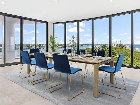 Ocean to Intracoastal. New Construction, ceanfront tower known as SeaGlass Jupiter Island. Close proximity to the NEW Apogee Golf Club. Privacy, security and service highlight the fashionable lifestyle in the luxurious intimate building. Limited to only 21 unique private residences, owners enjoy an oceanfront swimming pool, state-of-the-art fitness, 24-hour concierge and 2-car private garage parking.Spacious oceanfront balcony, dual primary baths, private elevator, floor to ceiling panoramic views of the ocean, intracoastal and private preserve. Rare opportunity on southern side of the building, this residence enjoys beautiful, bright light throughout the day capturing beautiful sunrises, breathtaking sunsets and cool ocean breezes. Photos showing furnishings are virtually staged.