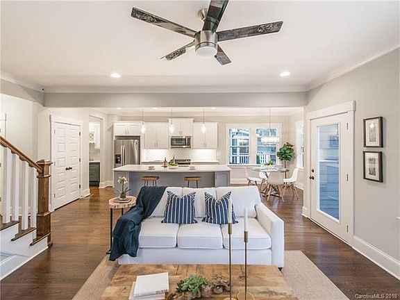 How did we get this much into 2055 square feet? A butlers pantry with a wine fridge, Dining Room, Office/bedroom and full downstairs bath (not just a powder room)? The size of the island it GRAND seating up to 5 people! Walk to the Heart of NODA, Light Rail Station and Night Life yet enjoy the private quietness of this cozy, amenity filled new construction home. The detached garage is oversized, wired and perfect for cars, storage or a mancave. The privacy fenced back yard offers the safety feature of allowing the homeowner to see safely to the car yet provide the privacy and safety of your large back yard. The concrete patio is perfect for gatherings and outdoor living space that we southern residents love! The attention to detail in the hand tiled window trim of the guest bath is amazing. The walk in master closet invites you in to sit down and relax while you make your dressing choices in the reality of natural light coming through the large window.