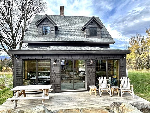 This renovated beautiful off the grid cape style home offers end of the road privacy with picturesque views of Jay Peak. Generator in the nearby shed is convenient and you won't even be aware the home is off the grid. Many open areas on this 22+acre property which gracefully leads to a HUGE pond overlooking the forests and mountains. The home offers 2 bedrooms, 2 full baths and one 3/4 bath. Each bedroom has it's own bath on the second floor with a full bath on the first. Hardwood and tiled floors, laundry area and foyer. Cozy kitchen and sitting area is complete with 3 sets of glass doors opening to a spacious sunny deck viewing the grounds beyond. Stone walkways and circular gravel drive complete the package.