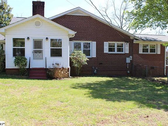 Remarkable Brick on 1.5 ac. Corner lot with loads of hardwood floors, sunroom, huge kitchen, breakfast room with tons of cabinets and butlers pantry. Great living room with fireplace, dining room, 3 large bedrooms, 2 full baths and other great features. Close to shopping and new Easley school. 24x60 mobile home on property could stay or go - great rental property. 2 car detached brick garage plus 1 car garage with mobile home. Storage building/shop also on property. Yard features in addition to shop & mobile home, lots of fencing and many flowers and ornamentals. A great buy for a little price.
