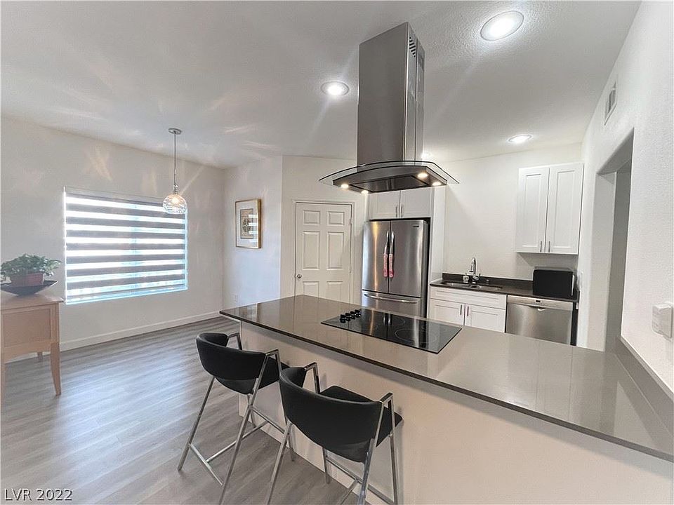 Beautifully Renovated, First Floor 2 Bedroom Condo with Detached One Car Garage in Gated Community in the heart of Summerlin North. Condo was completely remodeled in 2020 with New Kitchen Cabinets, New Stainless Steel Kitchen Appliances, New Quartz Counter Tops, Fresh Paints, New Flooring & Baseboard throughout, New Bathroom and New Washer and Dryer Included. New Window Covering was installed 2021. Livingroom has Fancy Electric Fireplace. Primary Bedroom is Spacious with Access to Patio with Walk-in Closet. Close to the Community Pool/ Spa/ Exercise Room/ BBQ Area. One of the Nicest Condo! Must See!!!