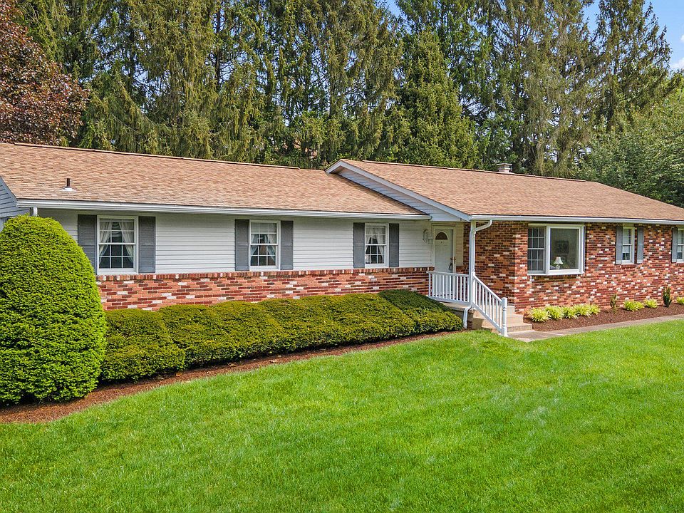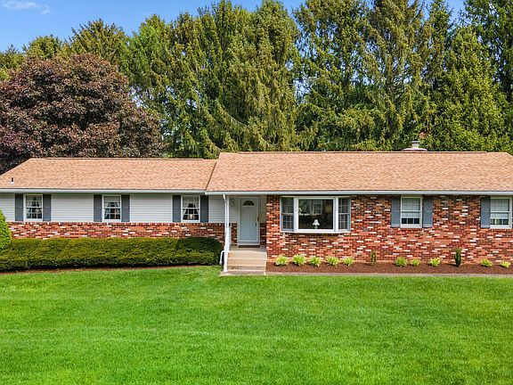A stylish brick accented rancher set on a 1.49 acre corner homesite offers great outdoor entertaining venues including a tiered deck with built-in seating stepping to a tree-lined backyard with a glistening in-ground pool surrounded by concrete decking and plenty of land to play on. With appealing interiors, this home features fresh carpet and paint, a bright living room accented by a bay window, a formal dining room with glass sliders opening to a deck and scenic tree-lined view, and for casual time a family room with a brick surround fireplace and walkout to the yard. The epicurean kitchen sparks culinary interest boasting Corian® counters, 42" raised panel wood cabinetry, crisp white appliances including a flat cooktop range, table space, and a double window with wonderful poolside and backyard views. A finished lower level is highlighted by a rec room, a sizeable full bath, additional storage, and a walk-up to yard and pool. Conveniently located near major commuter routes, shopping, dining, Carroll County Airport, recreation, parks, and fun. POTENTIAL 4TH BEDROOM. Recently replaced carpet and freshly painted. Roof and water heater [2019] and pool pump motor [2021].