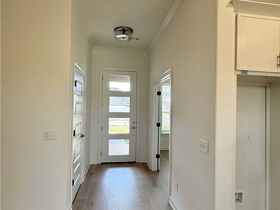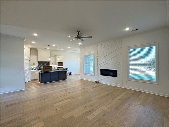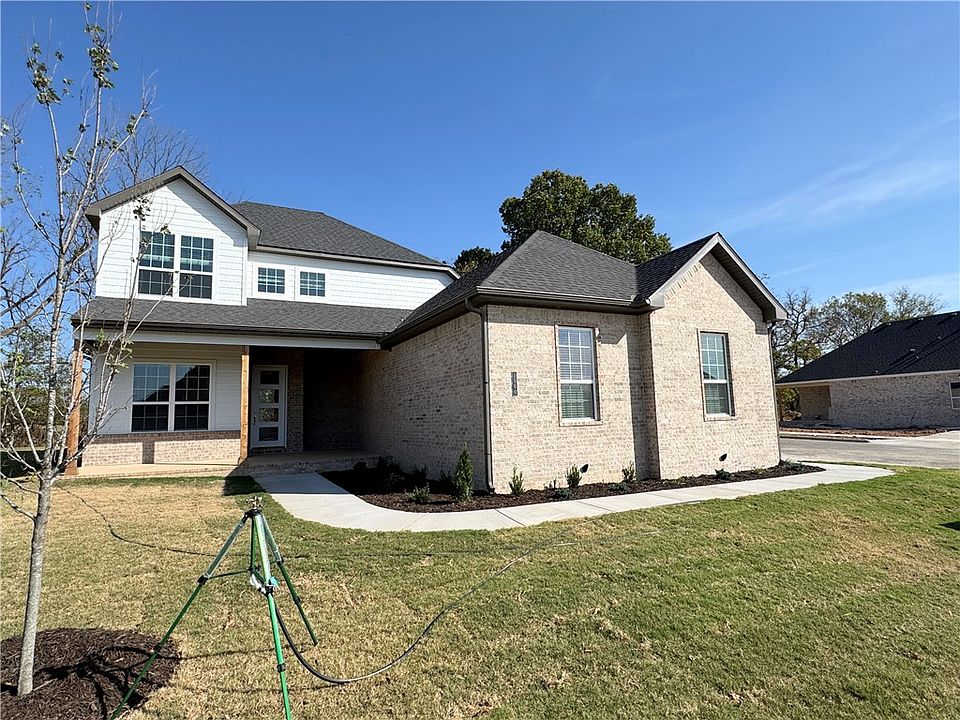 Pea Ridge is an up-and-coming community in Northwest Arkansas, Yorktown offers the perfect opportunity to find your dream home. This affordable, scenic, and well-maintained area caters to a variety of lifestyles, making it an ideal place to live. Upon entering the Willow Plan, you're welcomed by a charming front porch. Inside, an office space with wood accent walls greets you, LVP leads you into the open-concept living, kitchen, and dining area. The kitchen is equipped with 3CM granite countertops, custom cabinets, and a beautifully crafted wood hood. Conveniently located off the garage are cubbies, the utility room, and a powder room. The primary bedroom features exposed beams and an ensuite bathroom. Upstairs, you'll find three additional bedrooms, each with spacious walk-in closets. This home is situated on a corner lot with a tree-lined backyard, offering views from the covered back patio, perfect for relaxing.Limited time rates starting at 4.99% OR $7,500 from builder & up to $4K from preferred lender.