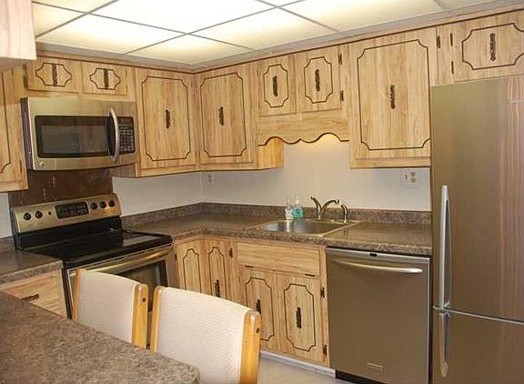 BEAUTIFULLY MAINTAINED, 3 BEDROOMS,2 BATHS, 2 DECKS FACING DESIRABLE REAR OF BLDG, SPACIOUS ROOMS, WASHER/DRYER CONVENIENTLY LOCATED IN UNIT. GRACIOUS ENTRY, WITH LG UPDATED CERAMIC TILE. ALL NEW STAINLESS APPLIANCES, SOLID SURFACE COUNTERTOPS. 3RD BEDROOM USED AS A DEN WITH BEAUTIFUL LAMINATE FLOORING. GARAGE SPACE AND ADD'L STORAGE ON GARAGE LEVEL.HOA FEE INCLUDES TRASH, WATER,SEWAGE, BASIC CABLE, COMMON AREAS. AMENITIES INCLUDE INDOOR POOL,REC ROOM,FITNESS RM, COMMUNITY ROOM,GUEST SUITES.