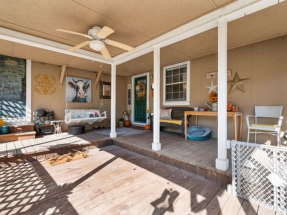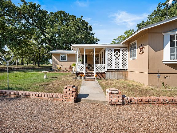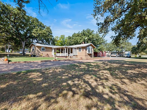 Welcome to this charming 3 bedroom, 2 bath home nestled on 4 acres of quiet, park-like landscape in Comanche County. This home offers plenty of room to grow and enjoy country living. Step inside to an open floor plan with an oversized living room with a wood-burning fireplace, bay window, and built-ins - perfect for cozy evenings or entertaining guests. The kitchen features a gas cooktop, dishwasher, and refrigerator. The kitchen has two adjoining rooms that can serve as a dining room, hobby room, and or serving area. The outdoor living is exceptional: large covered porches front and back invite you to relax, and mature oak & pecan trees offer shade and charm. Adding to its appeal are several outbuildings: a 40×30 insulated metal 3-bay garage, and a 25×12 storage building with electrical and plumbing. The lot is level with some trees for privacy, yet open enough for flexibility with outdoor uses and landscaping.